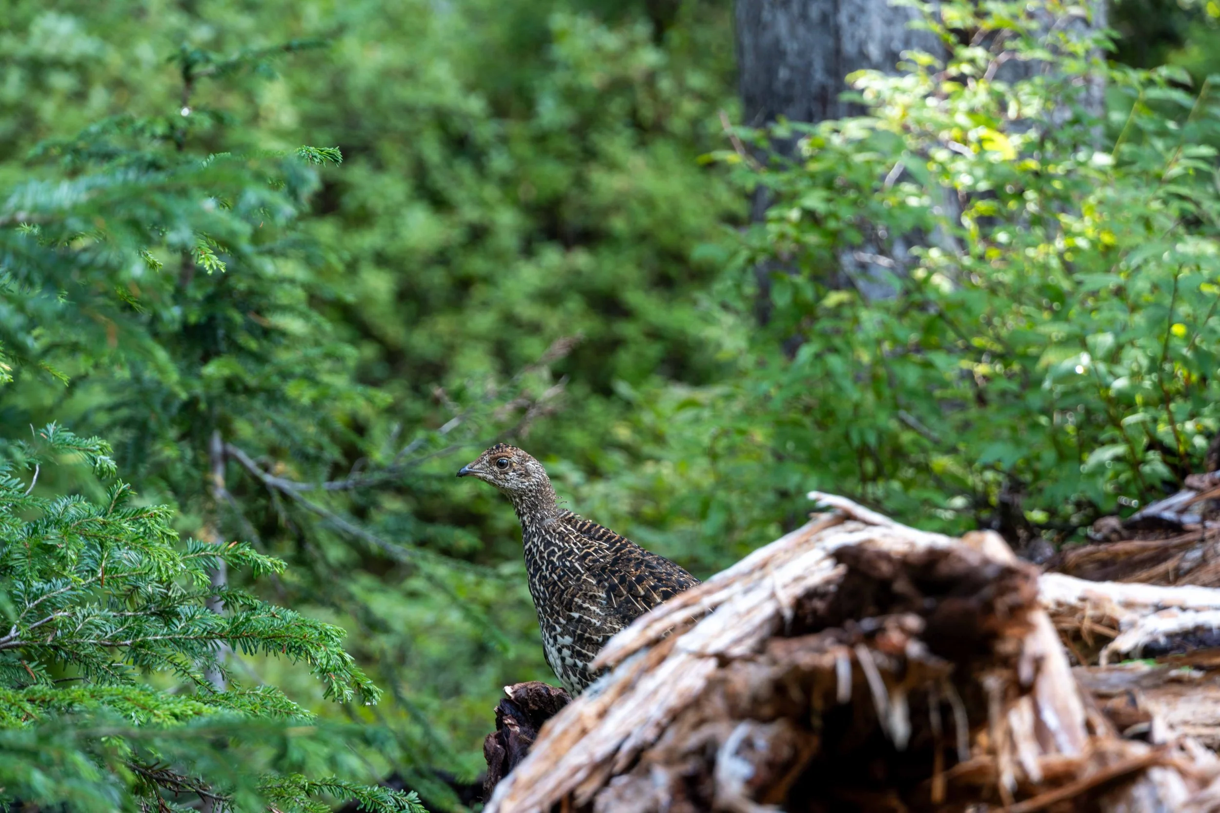 The hike north to Sol Duc Crossing was mostly in the forest and uneventful, and the descent made it a fairly easy trek. Hearing a rustle in the bushes, I spied a little sooty grouse, who hurried on to find better camouflage.