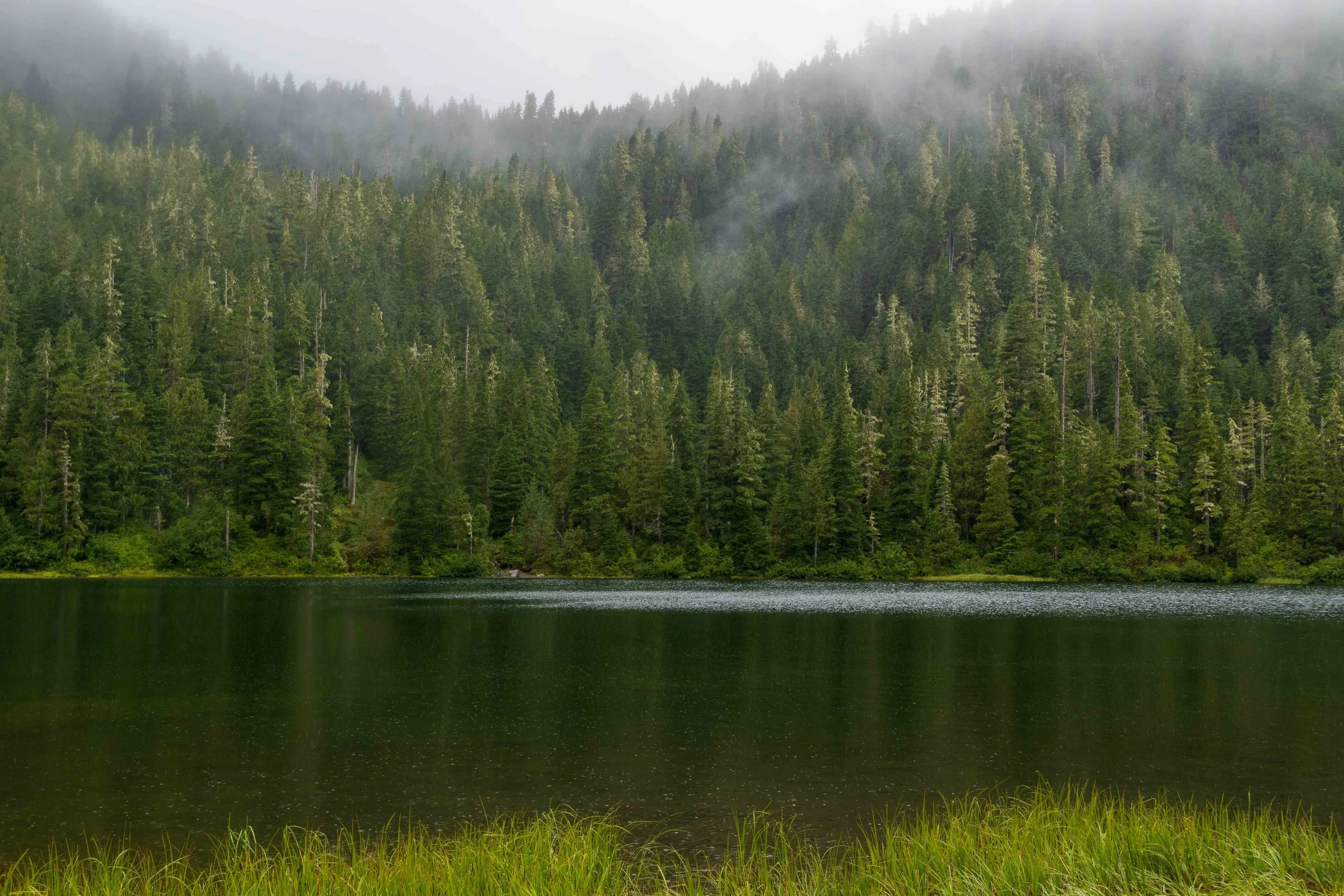 I passed the Canyon Creek area and soon climbed to Deer Lake, quite peaceful in the quiet rain.