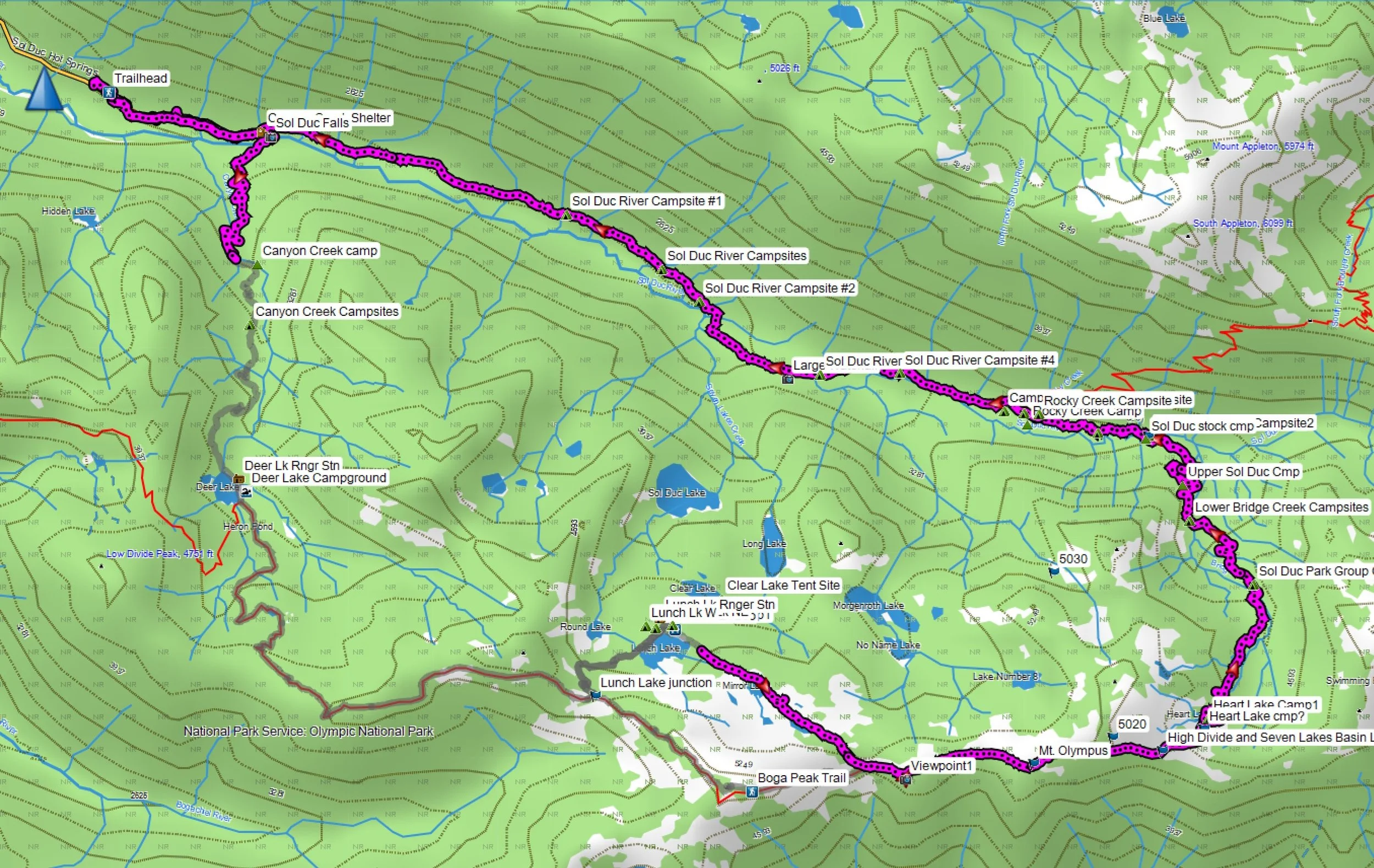 Day 1: Sol Duc Trailhead to Lunch Lake: ~8 mi* / 12.9 km
